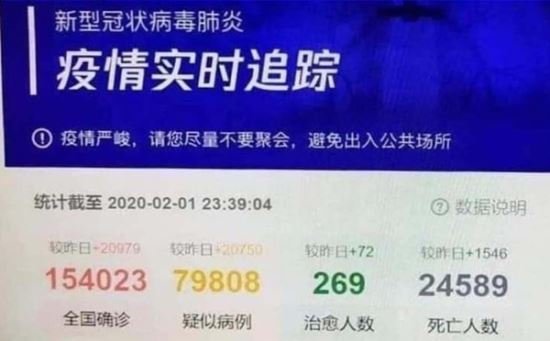 보도에 따르면 텐센트는 지난 1일 오후 11시 39분쯤 ‘유행병 상황판(Epidemic Situation Tracker)’ 웹페이지에서 신종 코로나 확진자 15만4023명, 사망자 2만4589명, 의심환자 7만9808명, 퇴원자 269명으로 표시했다.