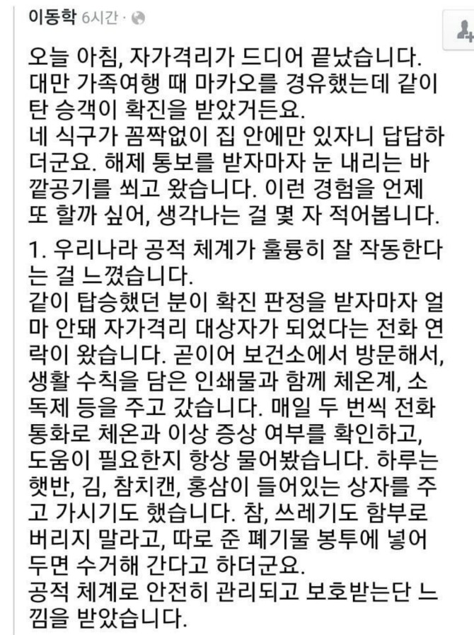 코로나 자가격리자가 격리 끝나고 쓴 솔직한 후기