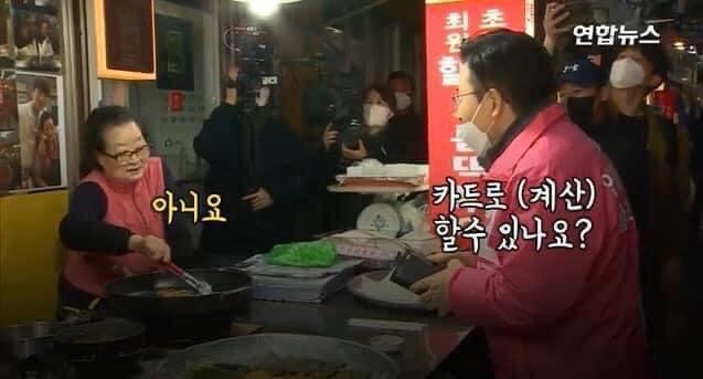 시장 노점에서 카드 결제 요구하시는 황 님.