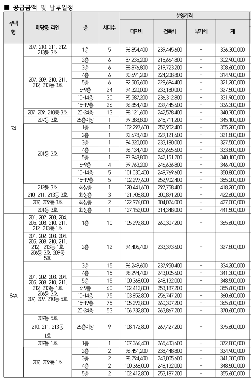 74최상층 : 4.18억 ~ 4.42억 [625만원]