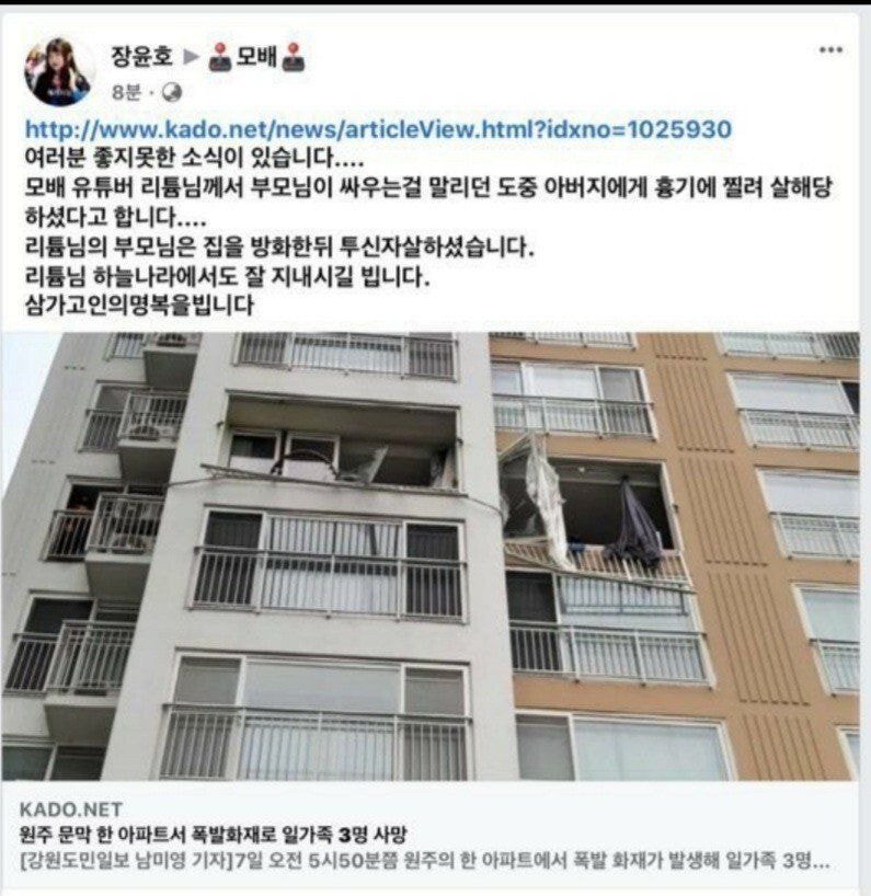중학생 유튜버 칼에 찔려 사망....jpg 본문