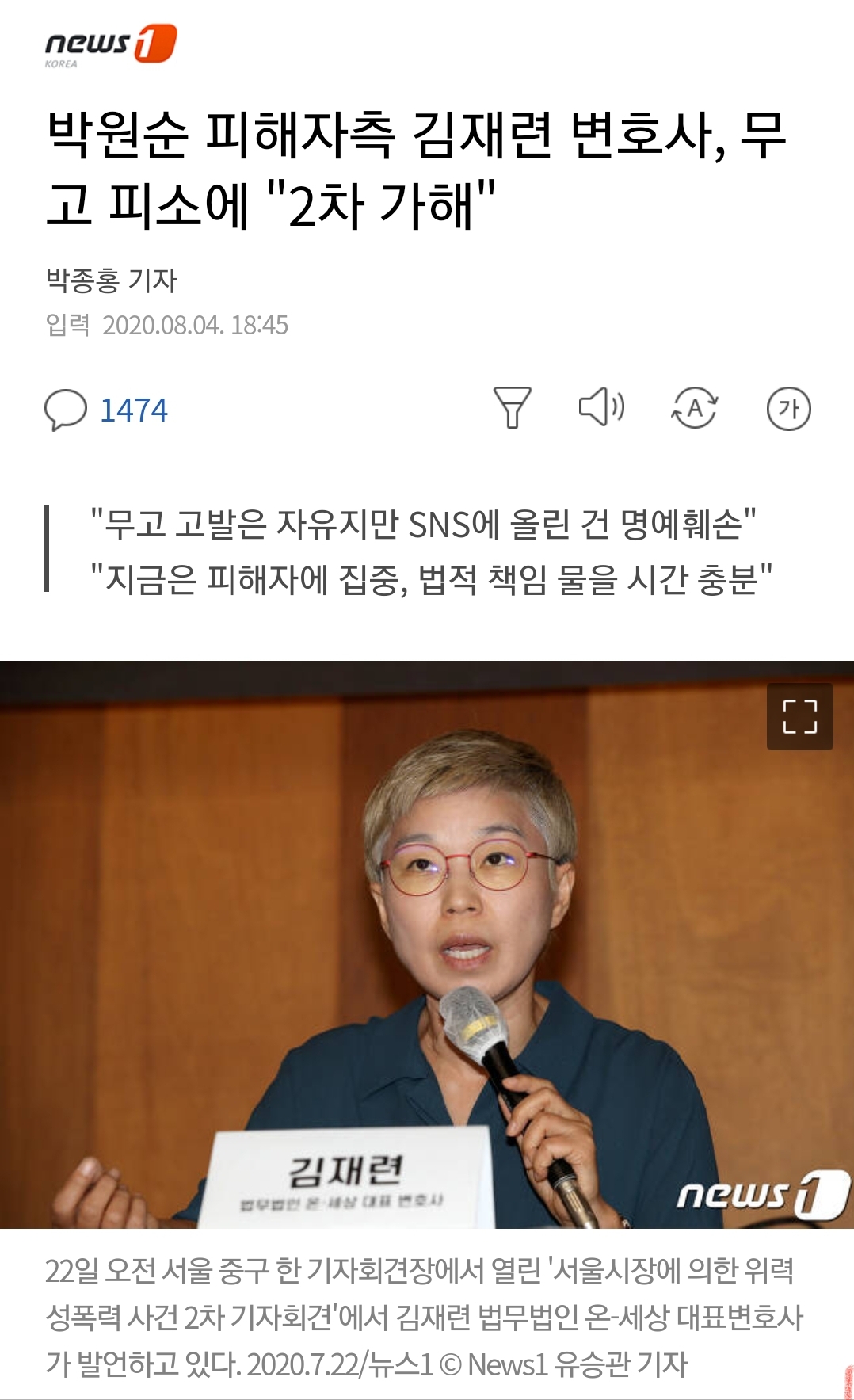 김재련, 본인 무고죄로 고발한것은 '2차가해' 본문