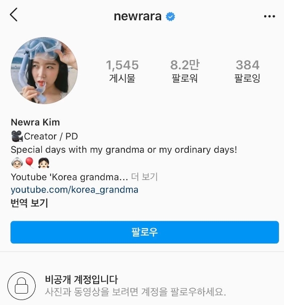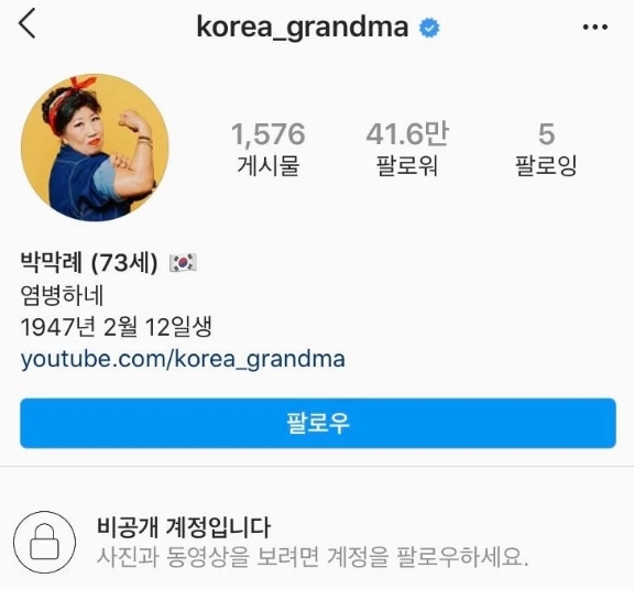 ‘박막례 할머니’의 인스타그램 계정이 비공개로 전환됐다.
