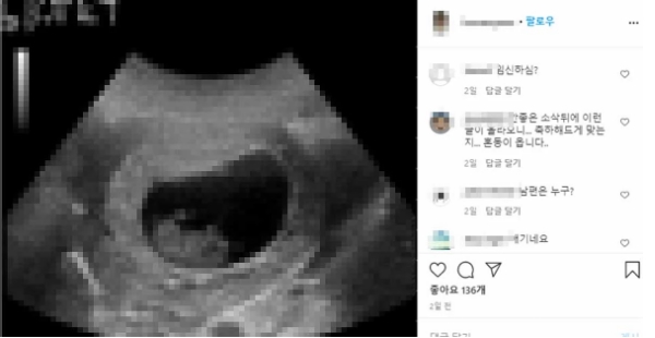 그는 뱃속 아기의 모습이 담긴 초음파 사진을 공개했으며 이에 상당수의 누리꾼들의 그의 과거 글과 연계해 임신 사실을 확정적으로 받아들이고 있는 상태다. 누리꾼들은 “축하하는 게 맞는지 모르겠다” 등의 반응을 보였다.