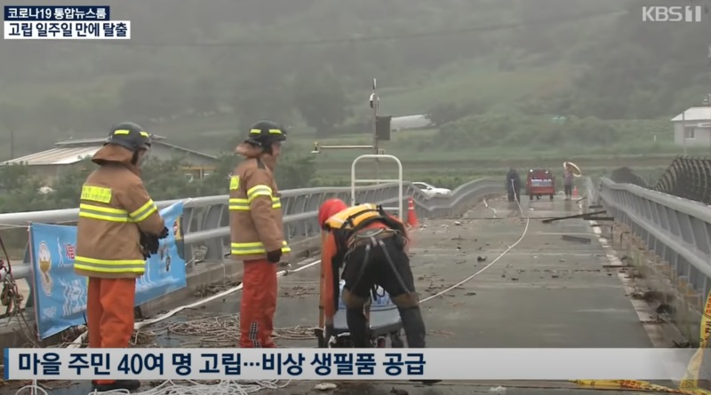 인제군의 한 마을, 폭우로 다리가 파손돼 주민들이 꼼짝없이 고립됨