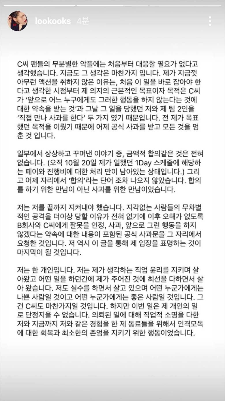 아이린 사건 에디터가 올린 입장문 본문
