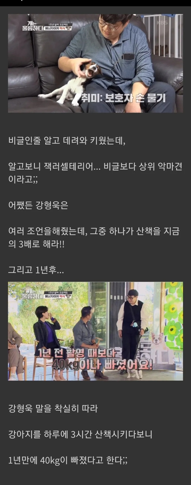 '개는 훌륭하다' 나와서 조언 받고 40kg 빠진 반려견 주인.jpg 본문