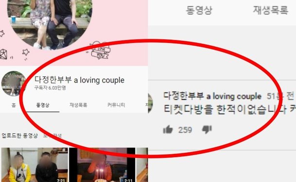30살 이상 나이 차이가 나는 유튜버로 주목 받았던 다정한 부부가 티켓 다방 운영 의혹 등에 휘말렸다. 현재 다정한 부부는 해명 영상의 댓글창을 막아 둔 상태다.