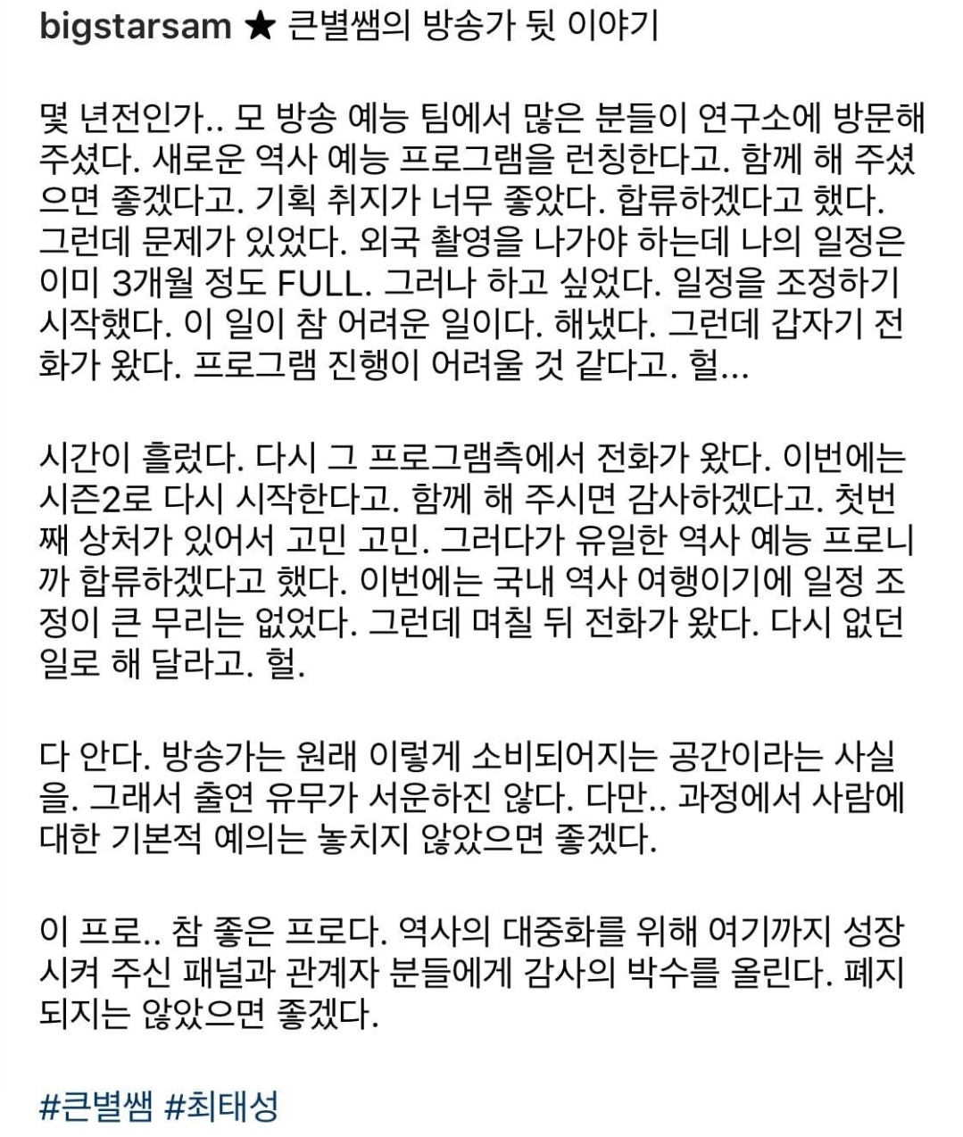 큰별쌤 최태성이 말하는 방송가 뒷 이야기 ㄷㄷㄷ 본문