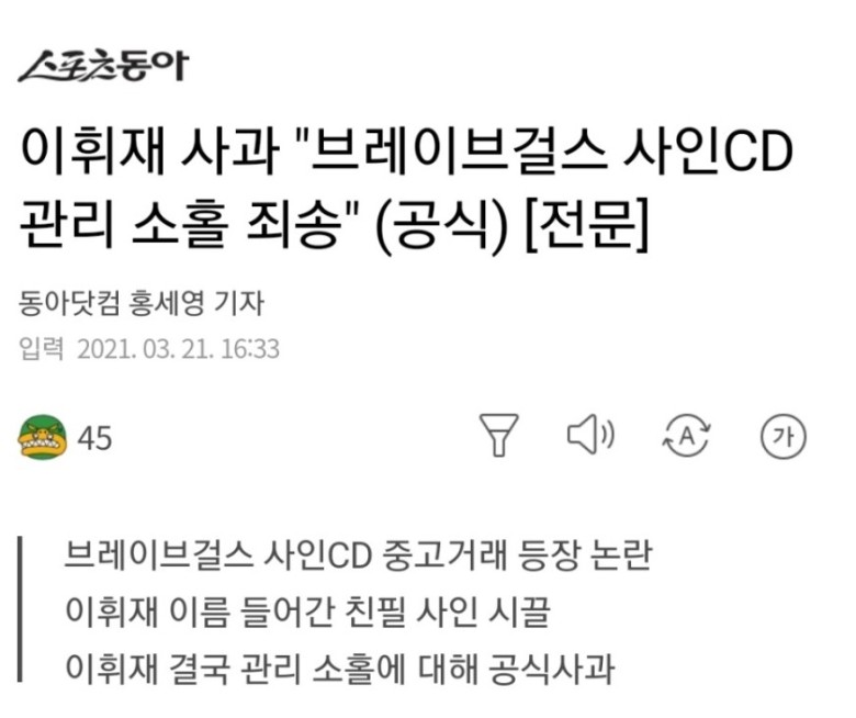 브걸 코인을 타도 시원치 않을 판국에 저런일까지 근데 사과는 왜 하는것지 ;;