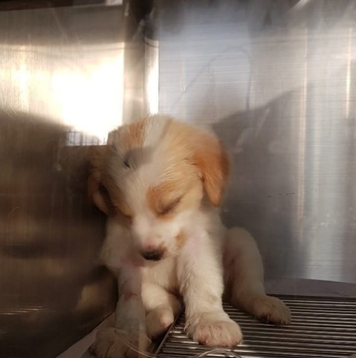 생후 한 달 된 강아지가 뜨거운 물이 담긴 봉투 안에 갇힌 상태로 버려졌다.