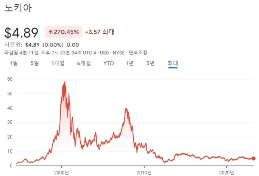 공포에 사면 된다, 노키아는 다시 일어선다 이딴 생각하면서 저때 노키아 주식에 전재산 풀매수 박은 인간들
